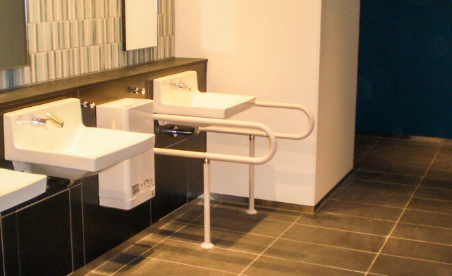 当社は、お客様・ご利用者の皆さまからの様々なご要望に対し、柔軟な対応で、意匠性に合わせた提案をし、壁・床の設置状況に合わせた下地等への対応能力により、納まりに配慮した製品のご提案・製作を行う事ができます。これからも機能性を重視した製品を、建築に溶け込むような製品で、建築の一旦を支える製品パートナーとして、共に歩みます。