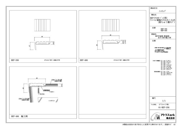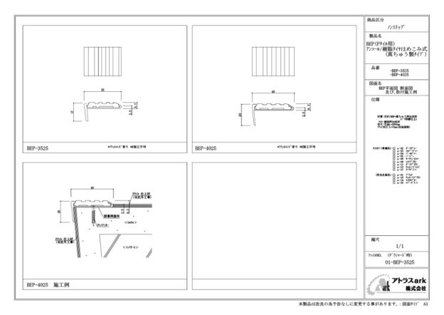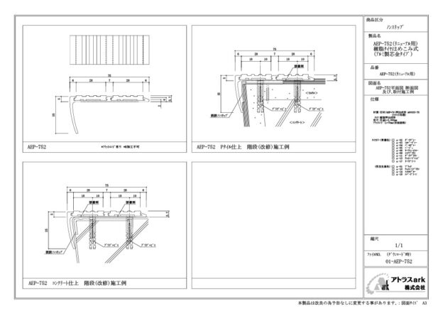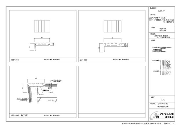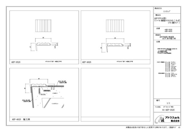 AEP-3525・4025 樹脂タイヤ(はめ込み式)ノンスリップ アルミ芯材タイプ(Pタイル用)