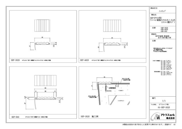 SEP-3525・4025・503 樹脂タイヤ(はめ込み式)ノンスリップ ステンレス芯材タイプ(Pタイル用)