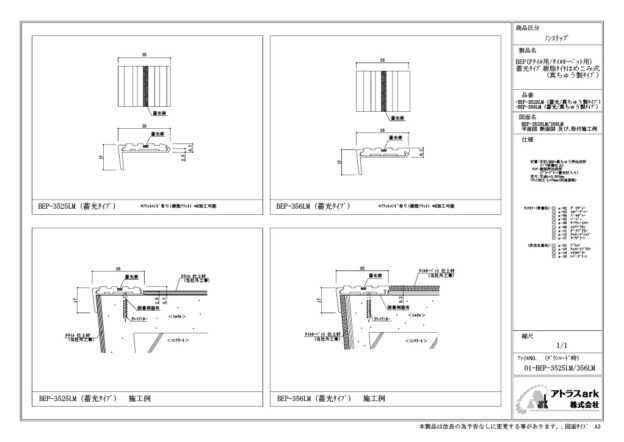 BEP-3525LM_356LM 樹脂タイヤ(はめ込み式)蓄光ノンスリップ 真ちゅう製タイプ(Pタイル用/タイルカーペット用)