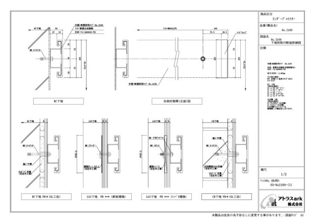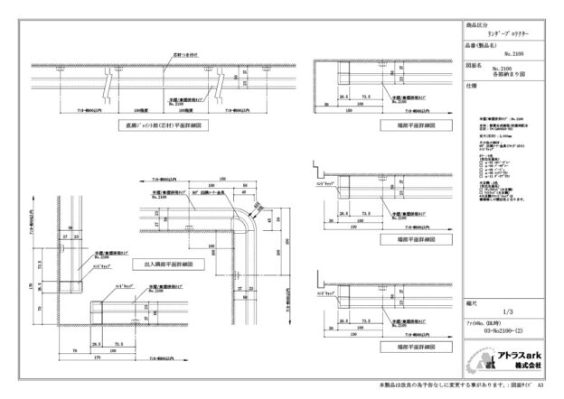 直線ジョイント部・端部・出入隅部 平面詳細図