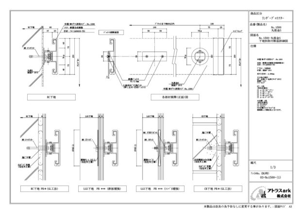 No1500-(2) No.1500 手摺り/ストレッチャー摺り兼用タイプ 丸座金S取付 納まり