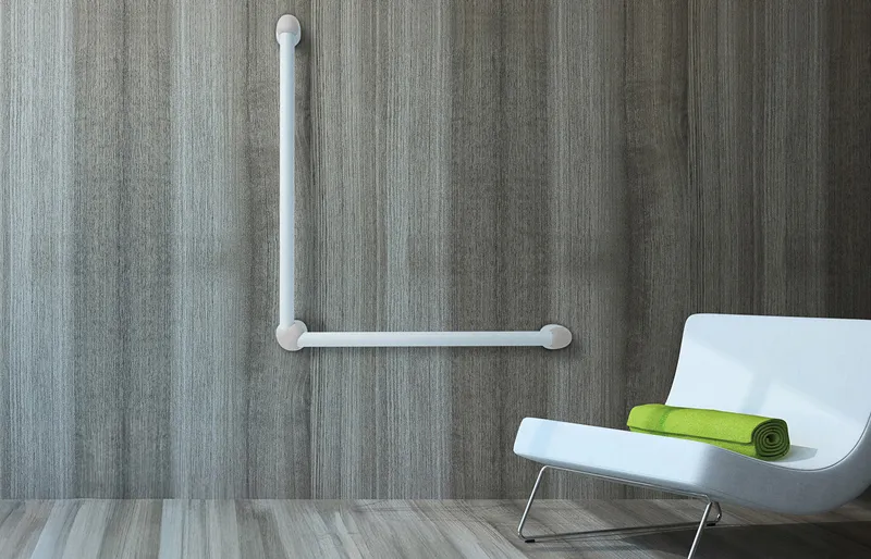 壁付けブラケット部には、ヒナのような愛らしく、コロッとしたフォルムを採用。小さなお子様からご高齢の方まで、誰にとってもやさしい、丸みとなめらかな形状にこだわりました。 さらに、ブラケットパーツや手摺りのカラーは自由に組み合わせが可能です。 「iQ手摺り」は、設計者の感性と空間の個性に寄り添う手摺りとして開発されました。