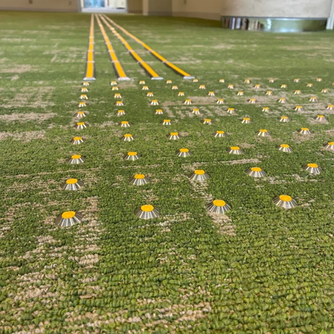 そのうえで鉄板にタップ加工を施し、裏側へ貫通しない皿ボルトでノンスリップを固定しています。