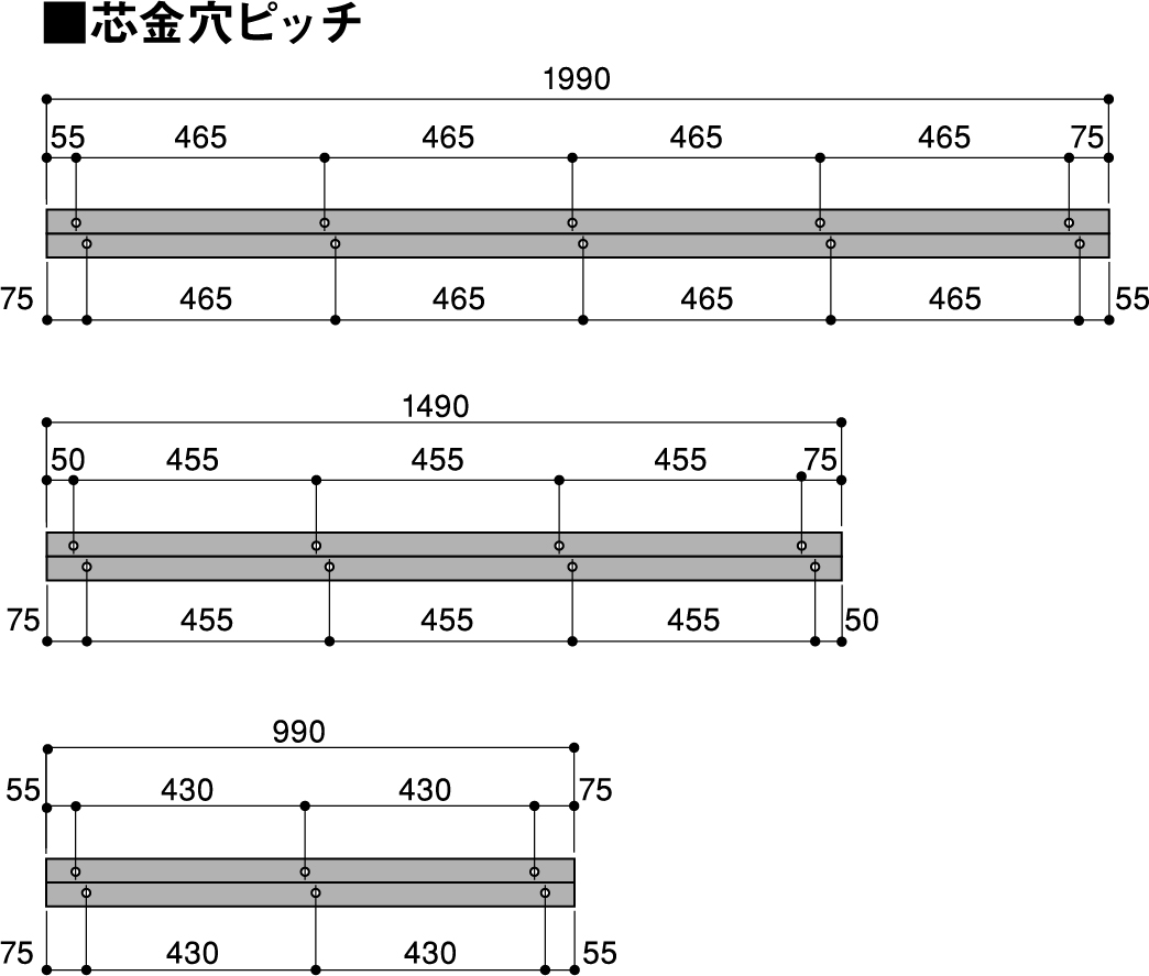 | 定尺(単位 mm) | L=2000, L=1500, L=1000 |