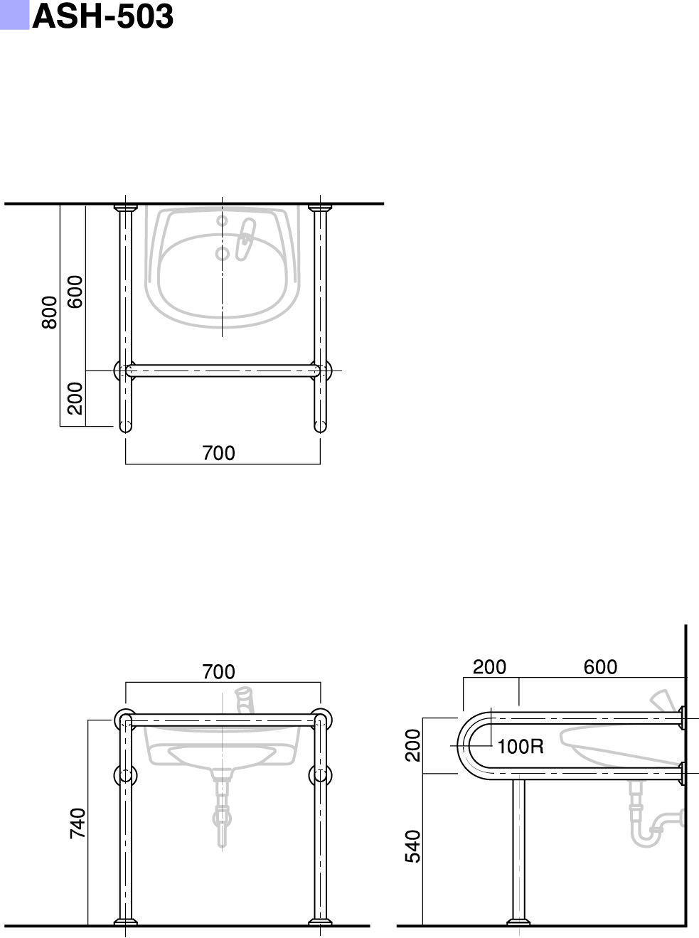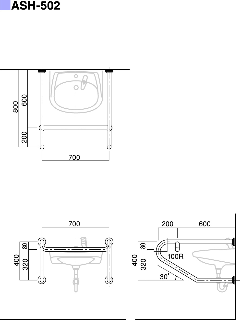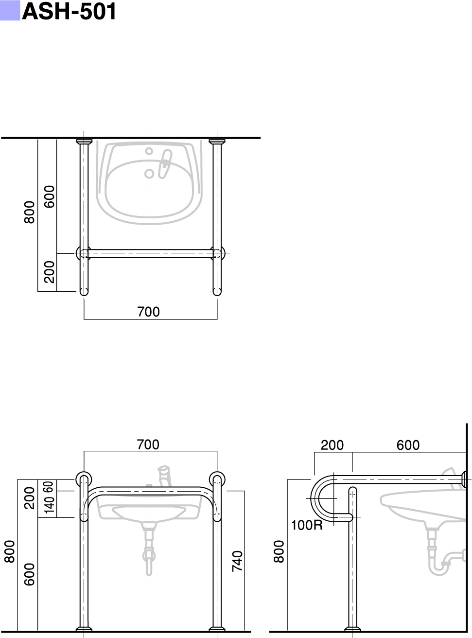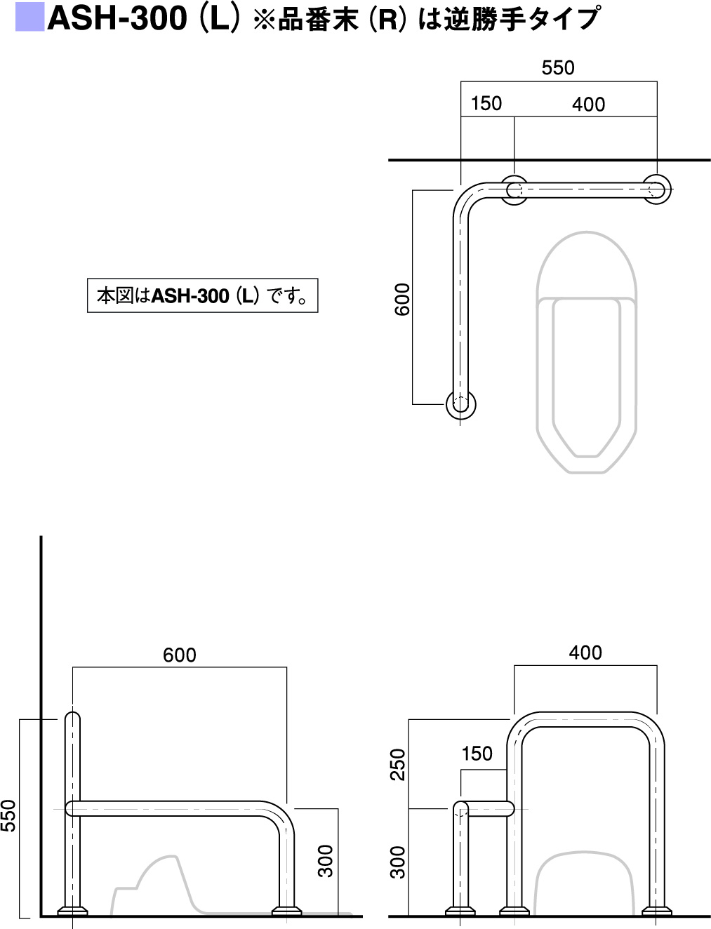 | パイプ外径 | Φ32、Φ34、Φ38 (可動式手摺り:ASH-105S・107Sについては、φ34のみ) |