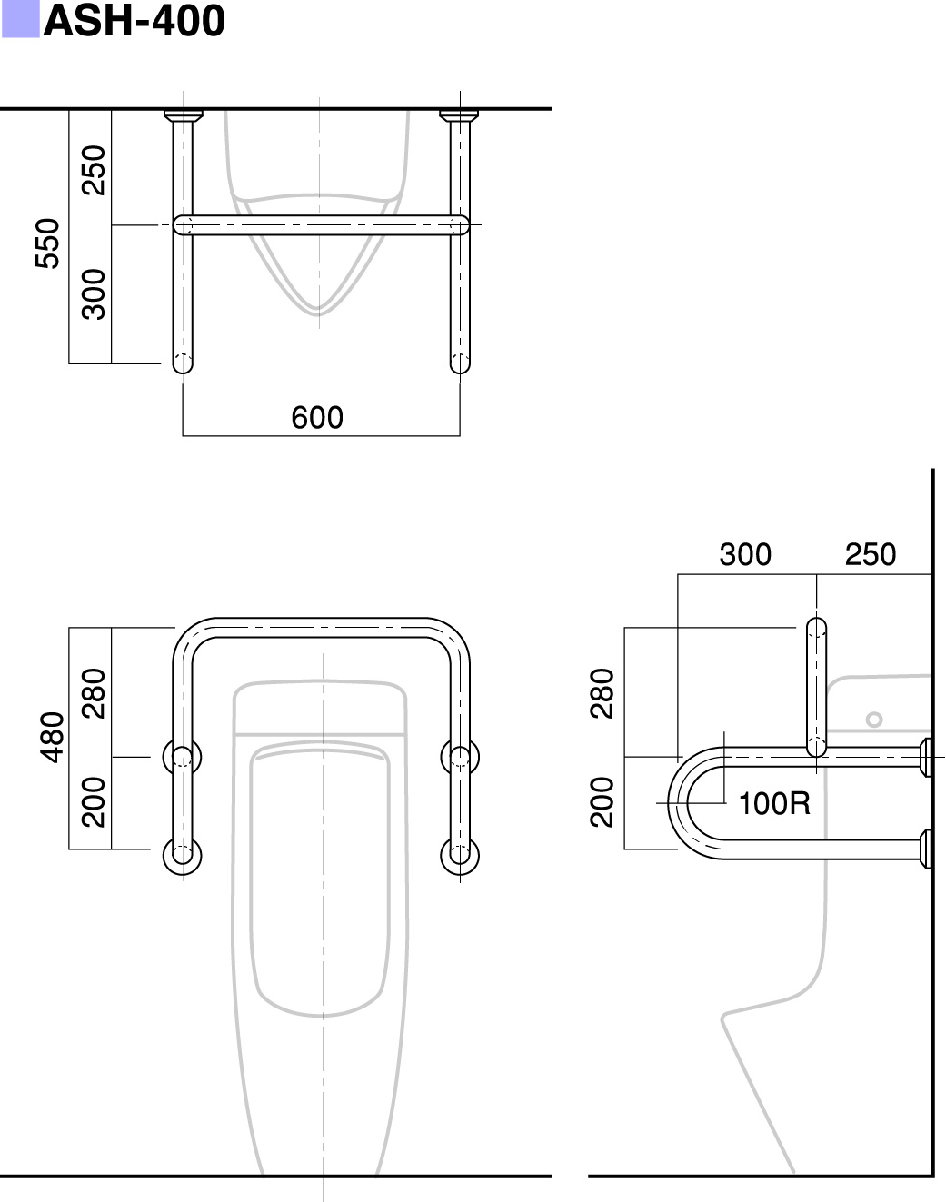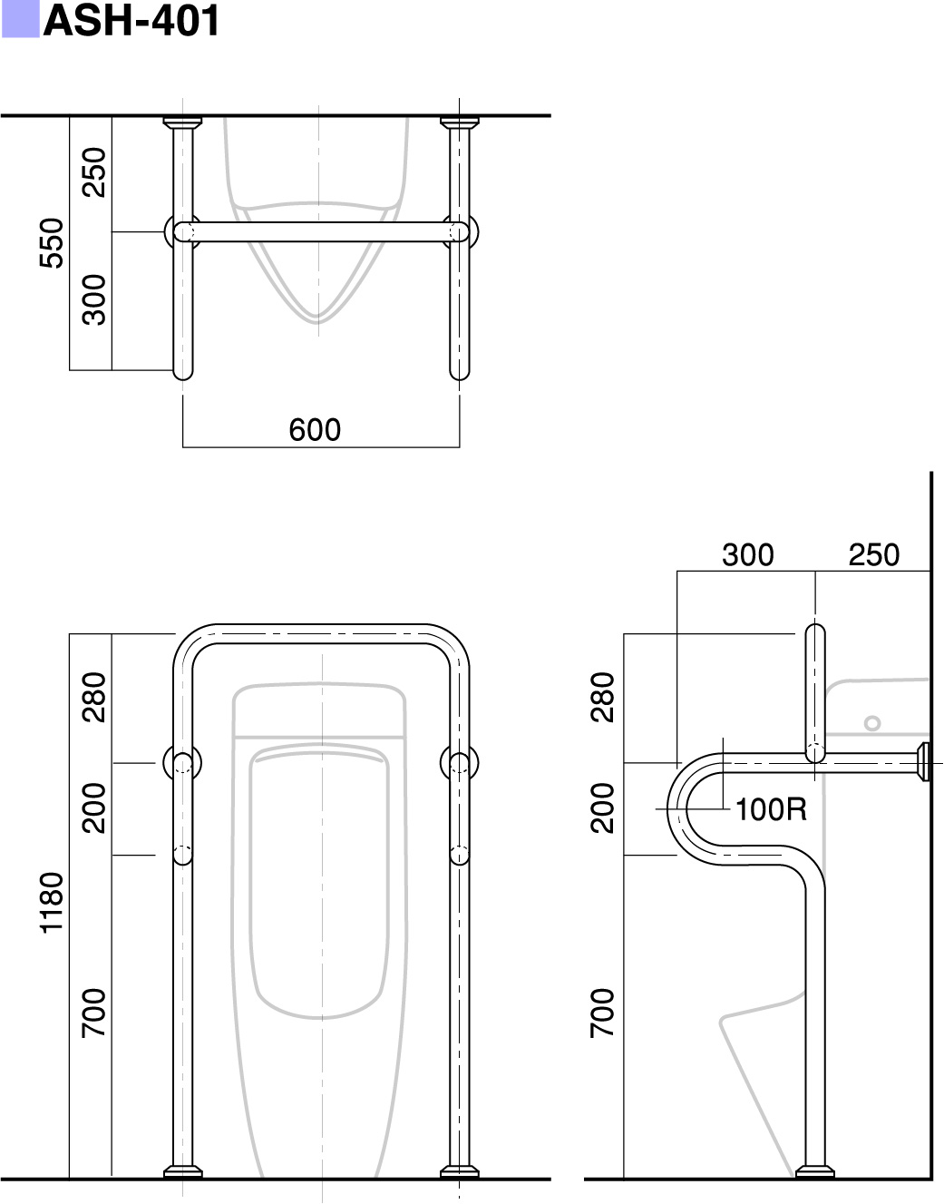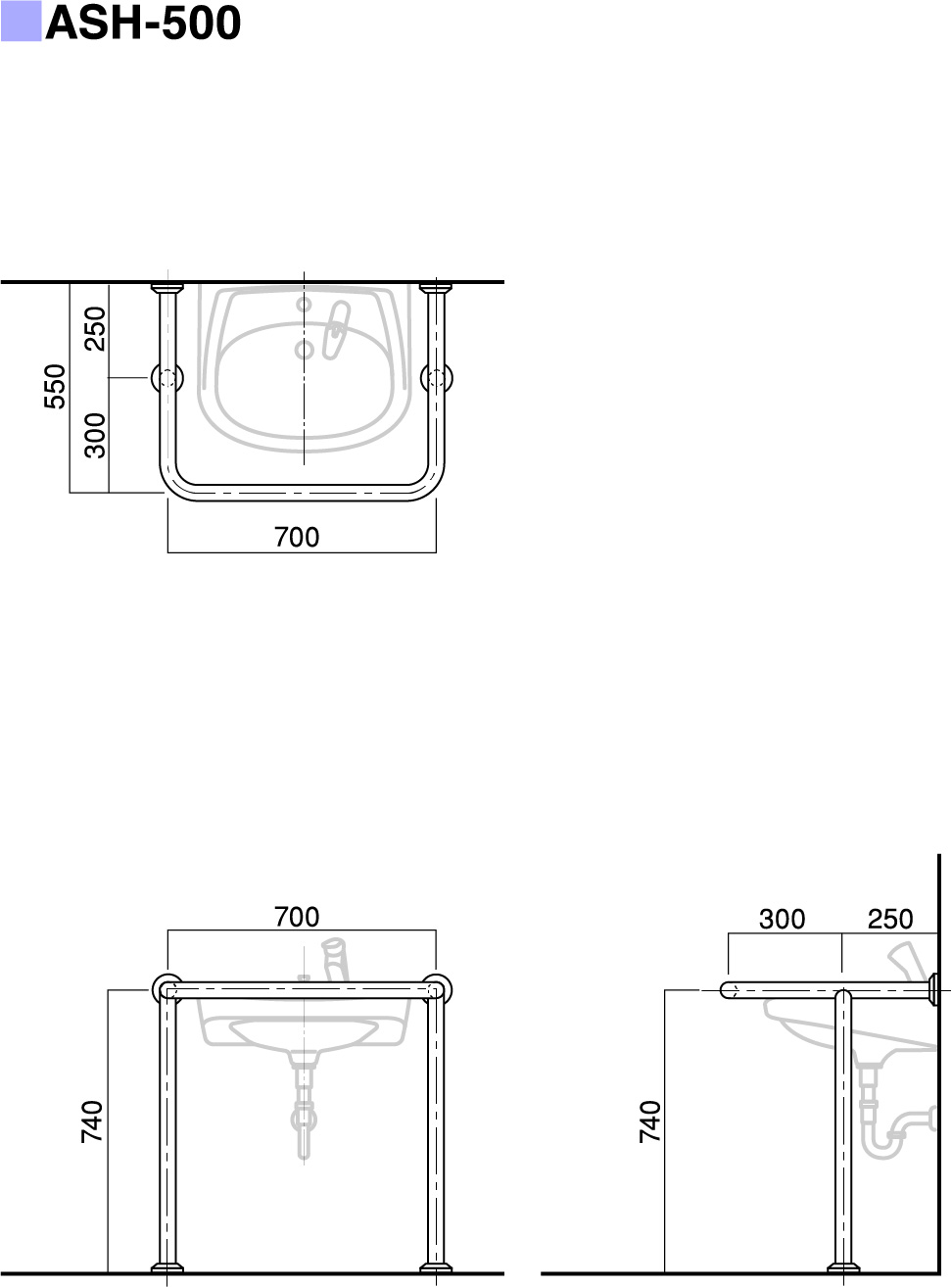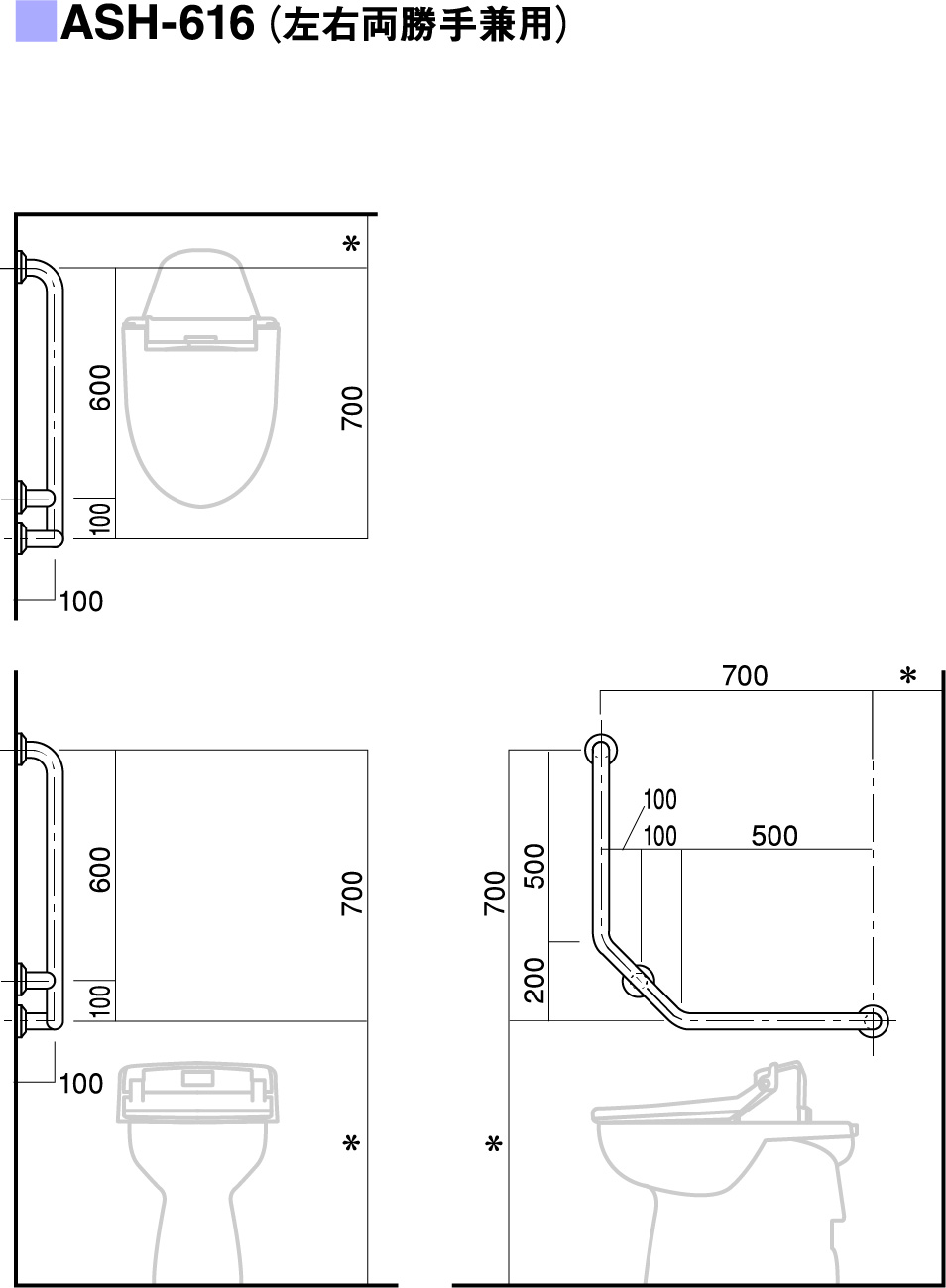 | パイプ外径 | Φ32、Φ34、Φ38 (可動式手摺り:ASH-105S・107Sについては、φ34のみ) |