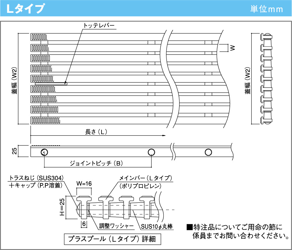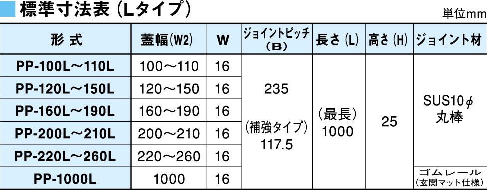 長さ(単位 mm) 最長 L=1000