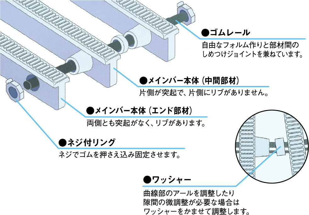 ジョイント材 SUS 10Φ 丸棒、 ゴムレール:EPTゴム(マット仕様のとき)