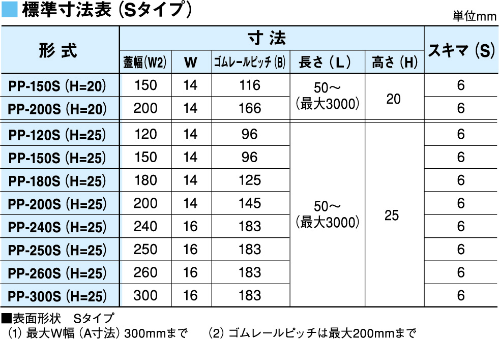 長さ(単位 mm) L=50~(最長 L=3000)