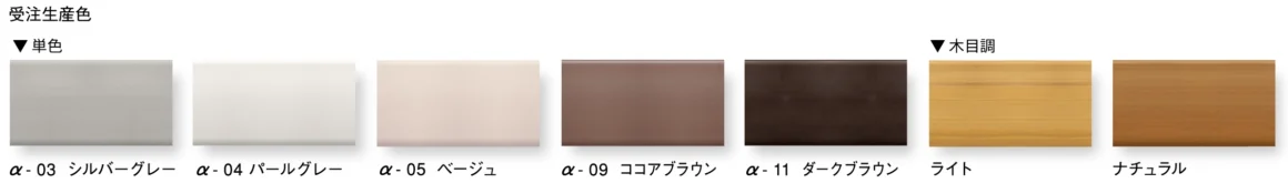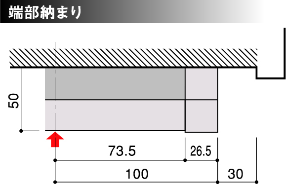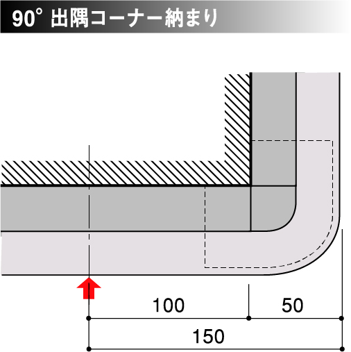 | 部材 | 90°出隅コーナー金具(アルミダイカスト)、 エンドキャップ(木目調の場合近似単色) |