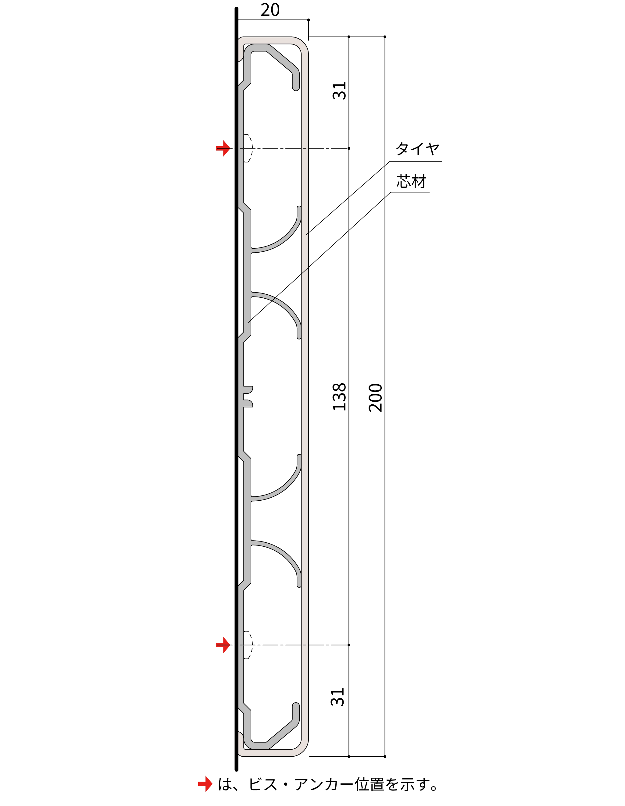 硬質合成樹脂製で衝撃吸収構造の為、 壁面保護の機能に優れたデザイン。
