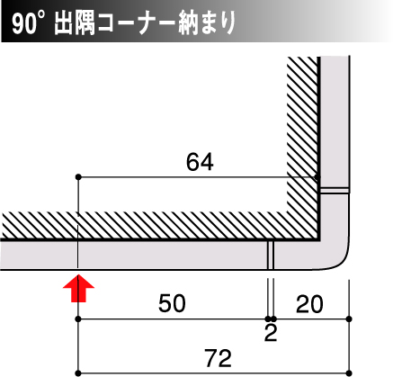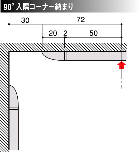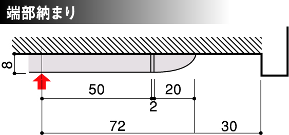 建具枠チリ寸法以下の厚みで、小口がアール形状の為、埃など付着が少なく衛生的でスッキリと収まる高耐久仕様。