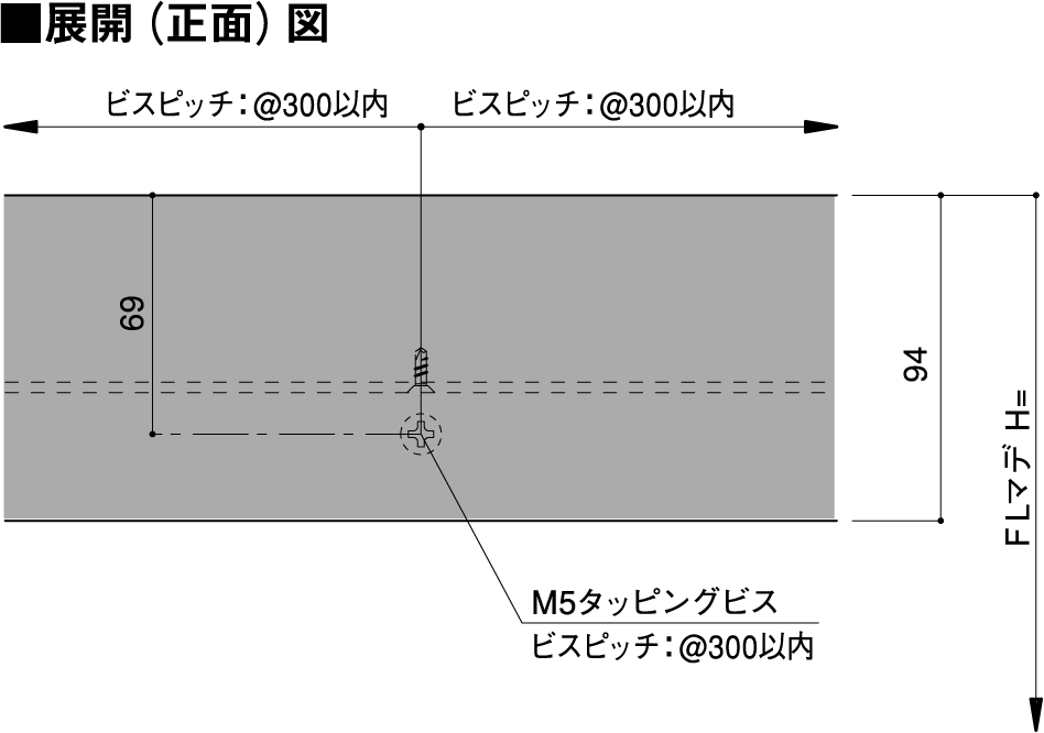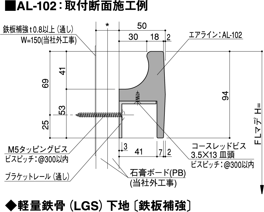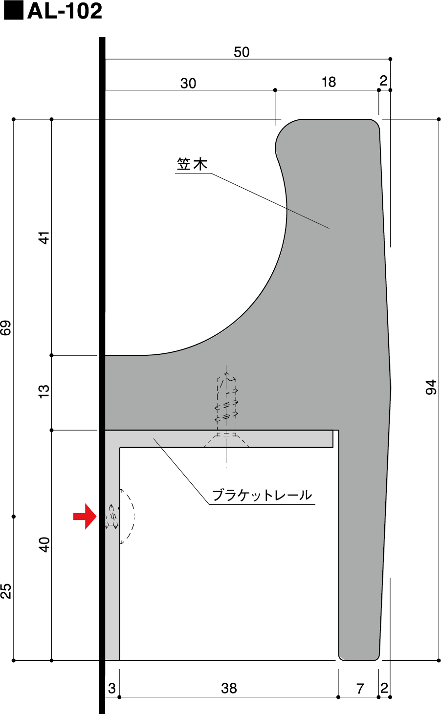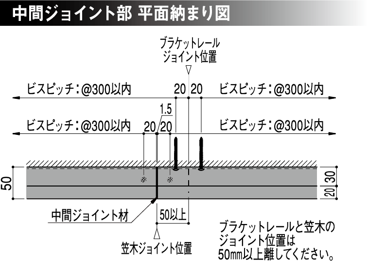 定尺(単位 mm) 笠木 L=2500、  ブラケットレール L=2000
