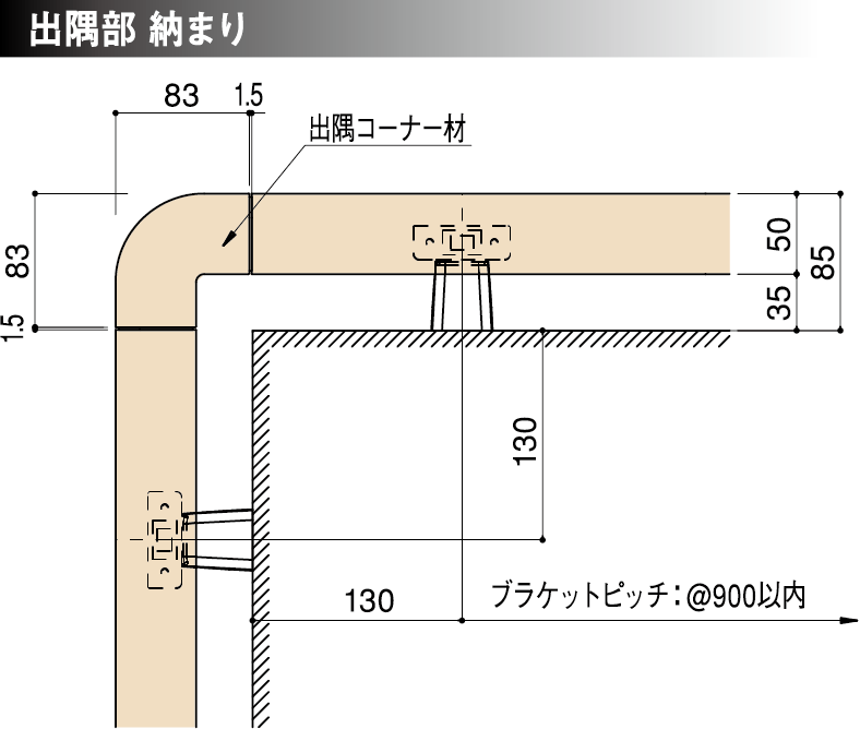 | 部品(材質:ABS樹脂) | 中間ジョイント、 入隅コーナー材、 出隅コーナー材、 エンドキャップ [右 / 左] |