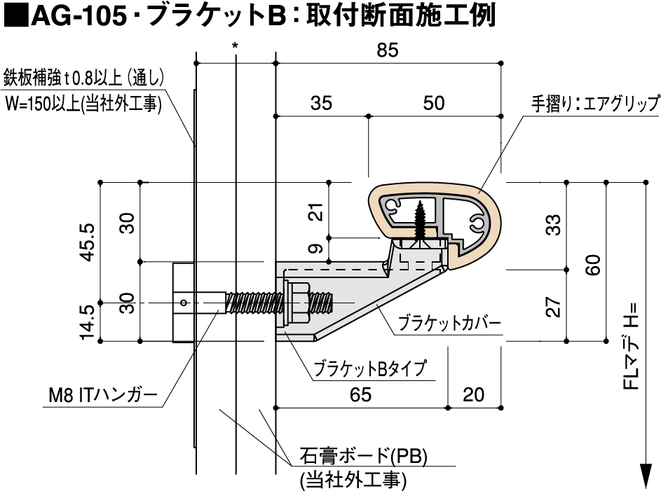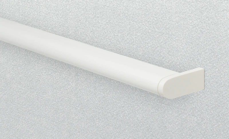 エアグリップ AG-105 は、一般的な丸型手摺り設置時に寄せられる「ブラケットが目立つ」「無機質な印象を与える」といった現場の声を受けて、デザインに反映・改良されています。この変更により、廊下に設置した際の外観がすっきりし、空間デザインに自然に溶け込む仕上がりを実現しました。また、病院や介護施設、在宅介護環境において、安全で安心な自立移動をサポートします。