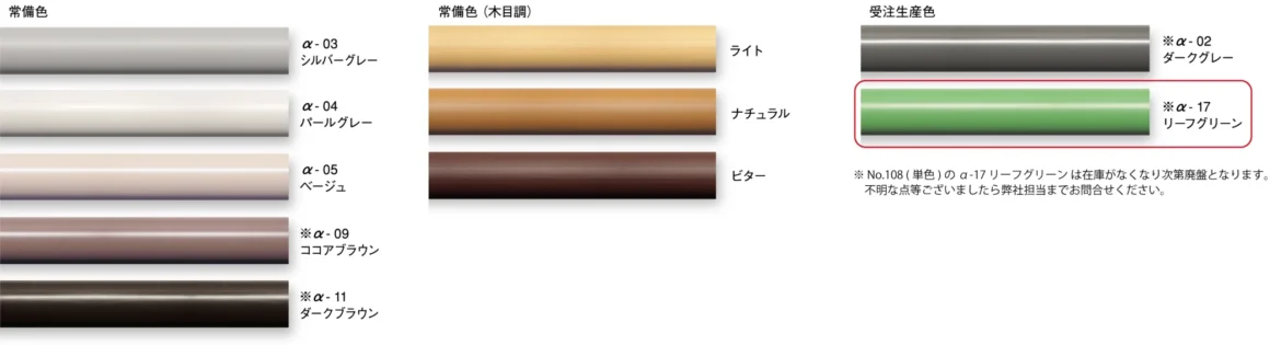 | カバー/タイヤ | 軟質合成樹脂(単色・木目調 / 抗菌剤配合)1巻=20m |