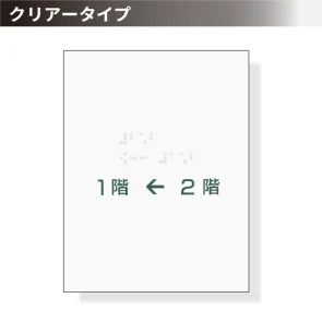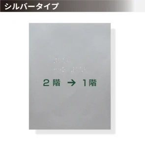 手摺り用点字シートは、現在の場所を把握したり、行き先を確認したりするのに役立ちます。このシートを手摺りに貼付けて利用することで、目の不自由な方が安心して行動できる環境を提供します。表面には点字で「現在の階数」と「次に進むとたどり着く階数」が記されています。 大きな施設では、バリアフリー対策の一環として、このような点字シートをよく見かけます。階段の上り口や下り口では行き先を示し、踊り場や階段では現在地や方向を知らせる情報が、緑色の文字と点字で表示されています。