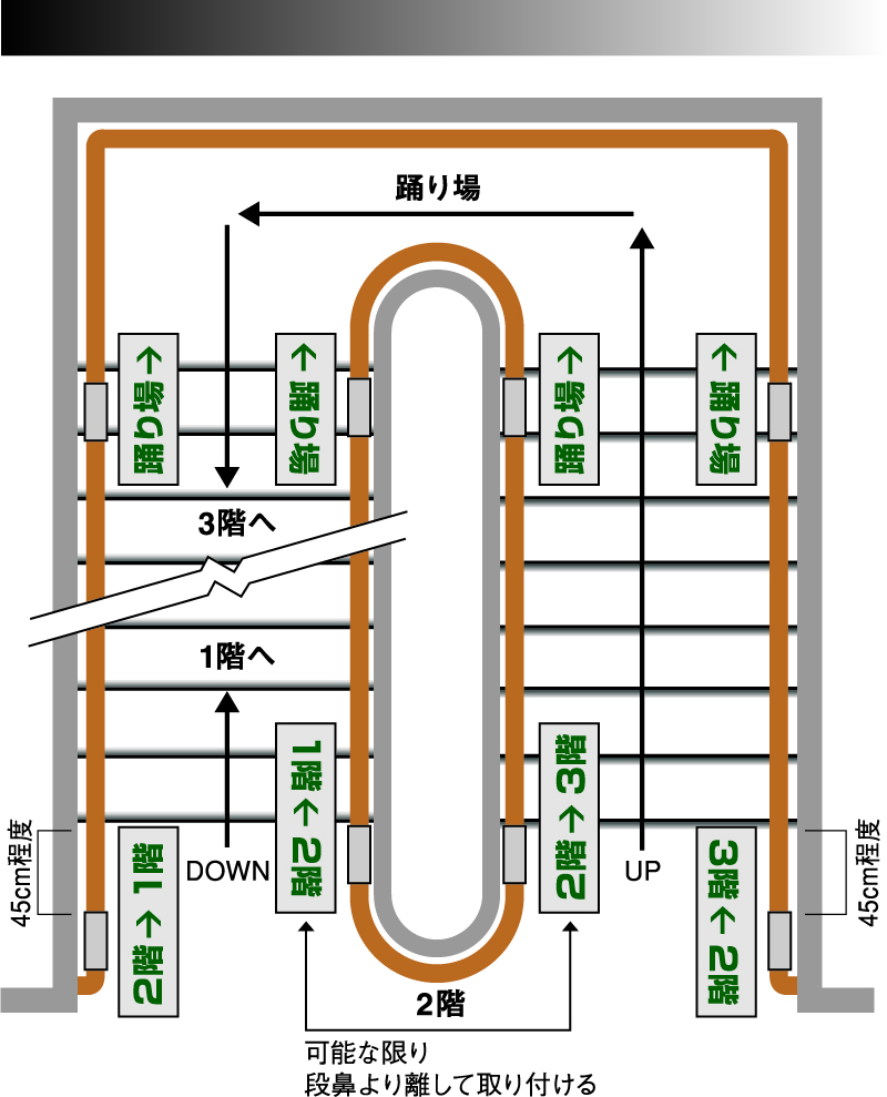 階段手摺りに貼り付けることにより、目の不自由な方が安心して移動できる環境を提供します。