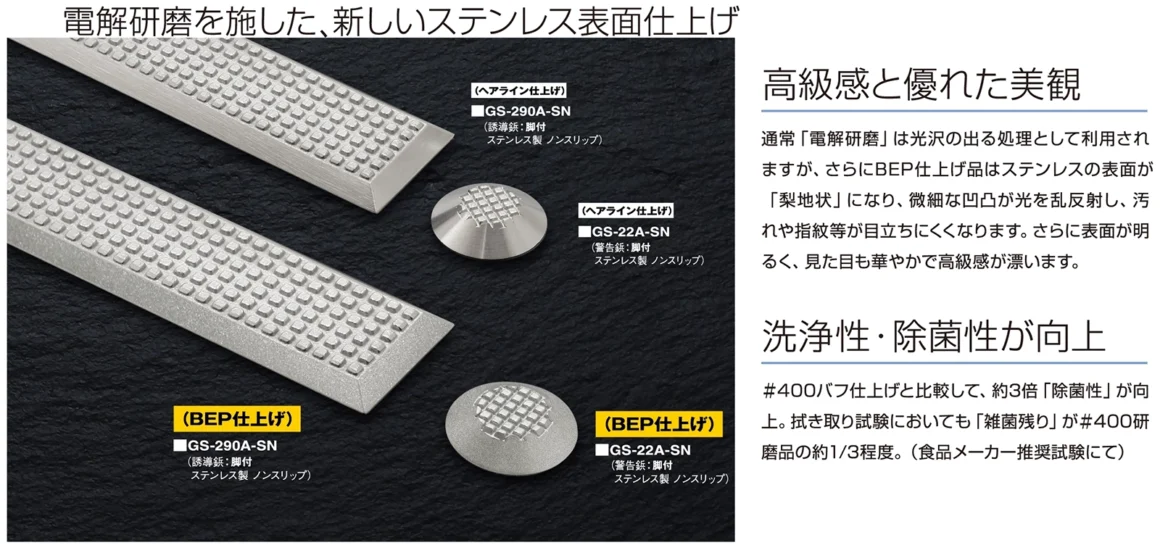 歩行用誘導鋲・点字鋲 BEP仕上げの特長